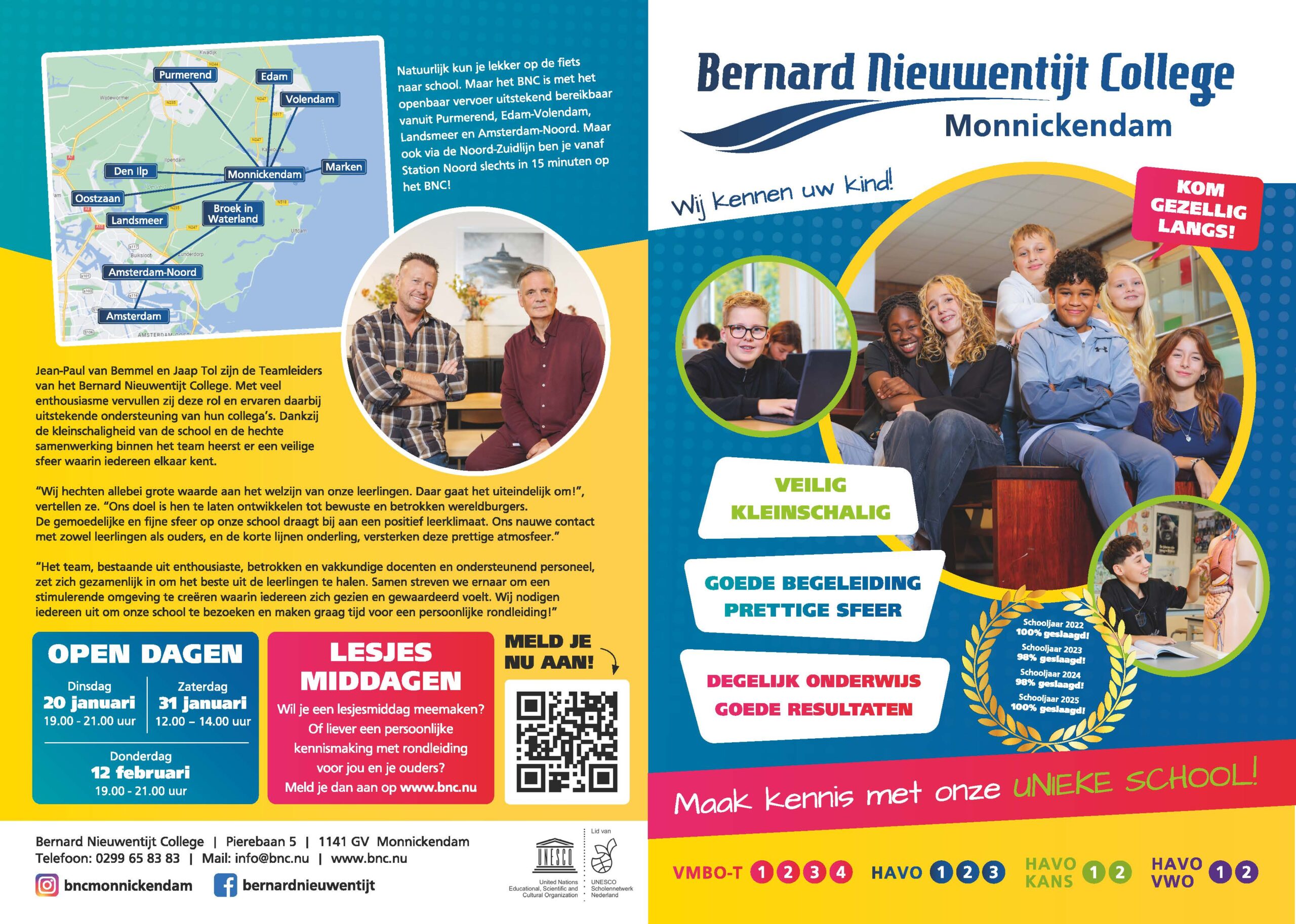 Open lesmiddag:Het Bernard Nieuwentijt College (BNC) is een school voor vmbo-t en havo/vwo-onderbouw, gelegen in het Groene Hart van Monnickendam. Wij kennen onze leerlingen en gaan voor een actieve schoolcarrière. Het onderwijs is grotendeels digitaal en biedt kansen voor iedere leerling!